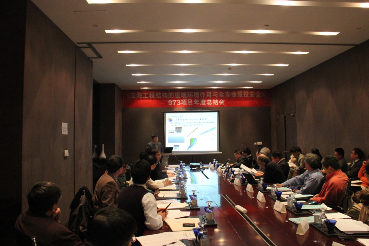 各个课题年度总结汇报后进行了全体会议讨论,专家们为项目中期研究工作提出了建设性的意见,对项目的研究方向给了明确的指导。讨论结束后,项目首席科学家滕斌教授进行了总结,并且向大家强调了项目财务检查和中期评估的基本要求。他指出各课题务必紧密围绕项目的三个关键科学问题,牢记“深海”、“极端环境作用”、“全寿命服役安全”及“工程”这几个关键因素,结合各自的研究重点,明确目标,加强各个项目组之间的合作及成果分享,争取出高水平的研究成果。滕斌教授对项目咨询组、专家组为本项目研究的精心指导表示衷心地感谢。同时,他还感谢5个课题的所有研究人员,在973项目的第一年内,发挥了齐心协力、努力创新的科研精神,为本项目后期研究工作的顺利、持续、深入开展奠定了良好的基础。他还对各课题更紧密聚焦本项目的关键科学问题提出了要求。