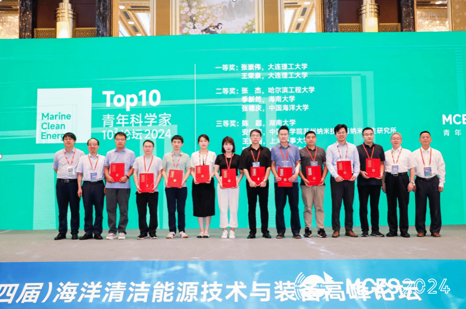 此外,本届MCES首次引入青年科学家10²论坛,旨在每年评选出10位青年科学家,以期利用其科研成果推动未来10年的产业进步。经MCES权威专家评审打分,青年科学家论坛评定出优秀报告一等奖2项、二等奖3项、三等奖5项,优秀报告获奖人在 MCES 大会主论坛接受证书。我室张崇伟副教授和王荣泉副教授作为青年科学家代表分别做了“基于液舱晃荡原理的浮式风机动态减摇机制”和“波浪能的高效开发及其对双碳目标实现的贡献前景”的报告,他们成功入选Top 10青年科学家,并且均荣获优秀报告一等奖。