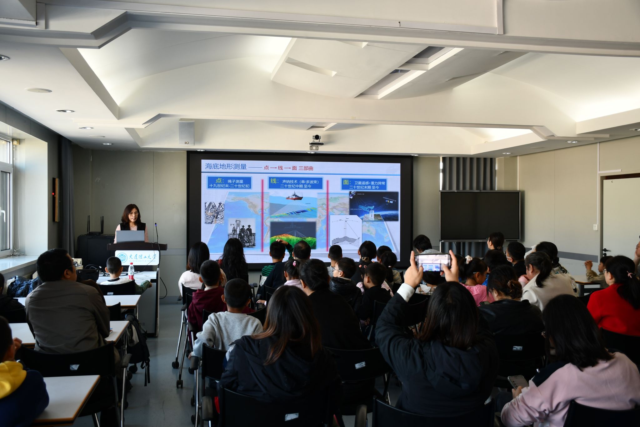 在专家讲堂环节,辽宁省教学名师、大连民族大学高凌霞教授作了题为《走进深蓝——触摸海底地形与海洋工程》的科普报告。她凭借丰富的教学与科普经验,将复杂的海底地形知识,以及港珠澳大桥、海洋钻采平台等重大工程案例,转化为生动的影像和趣味故事,深入浅出地引导小朋友们领略海洋工程地质的奥秘。