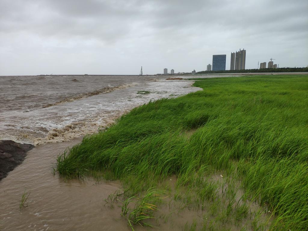 盐沼植物广泛分布于海岸带。这些植物群落可以降低植物区水流速度,消减波浪(图1),减少海岸冲刷,促进植物区泥沙淤积。在长时间尺度上,盐沼植物构成的湿地系统能够保护海岸带生态环境,稳固海岸,降低风暴潮和海啸等海洋灾害带来的损失,甚至可以减轻海平面上升带来的不利影响。