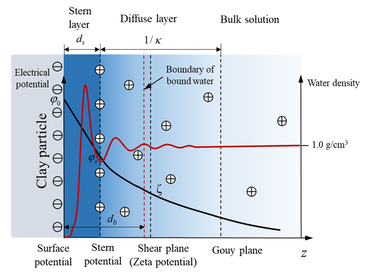 黏土的物理、化学和工程性质很大程度由吸附在黏土颗粒表面的水膜所决定,因此黏土结合水的测定和性质的研究一直是岩土工程中的研究热点。经过几十年的发展,研究人员提出了离心沉降法、热重分析、等温吸附法、X射线衍射法等测试方法,这些方法主要应用了结合水与自由水的性质差异来测量结合水的含量,当前的方法存在测定标准不统一的缺点,对于不同土样测量结果差异较大,严重制约了对黏土结合水的研究。