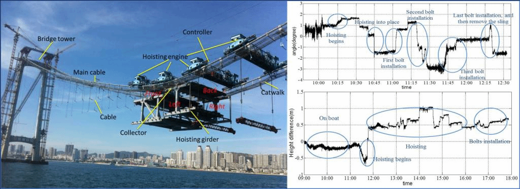 研究团队研发首款仅基于智能手机的实时监测系统,该智能手机自组网监测系统由控制端、采集端及实时报警系统组成。控制端发送指令至采集端,并监测采集到的数据。采集端固定于待测结构物上,在接收控制端发出的指令后,利用手机内置传感器进行实时监测,并每隔20秒反馈数据至控制端。在控制端可以设置安全阈值,一旦所监测数据超过阈值,则会发出报警信息,给予工作人员以安全提示。该系统已成功应用于大连星海湾跨海大桥的吊装实时监控中。
