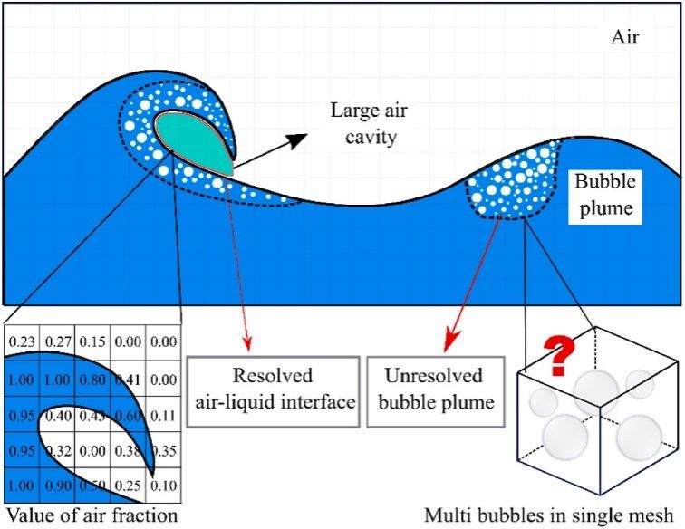 波浪砰击过程往往伴随着气体裹挟、波浪破碎等高充气率现象,使得对具有强湍流动能的裹气波浪砰击准确预报十分困难。越来越多的研究发现不同尺度的空气压缩特性会实时影响复杂波浪场的动力特性;同时,裹气砰击的“缓冲”或“放大”效应悖论长期存在。因此,提出多尺度掺气流体高精度模拟方法用以揭示裹气砰击机理,已经成为一项非常具有挑战性的任务。