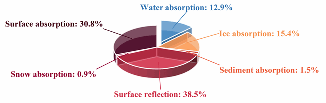 图1. 入射短波在表面反射及雪/冰/水/沉积物各环节的分配占比