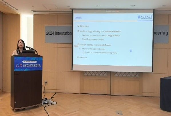 2024年11月1日至4日,2024年土木与海洋工程国际会议(JCCME 2024)在韩国济州成功举办,我室宁德志教授担任大会主席并致开幕辞。会上,滕斌教授作主旨报告“Simulation of a moored ship in front of different kind of docks”,介绍我室在船舶靠岸系泊领域的仿真技术新进展;陈丽芬教授作主旨报告“Nonlinear resonances of surface waves over an array of ocean structures”,介绍我室在海洋结构阵列非线性波浪共振方向的研究成果;张崇伟副教授作邀请报告“Dynamic anti-rolling mechanism of floating wind turbine based on liquid-sloshing principles”,介绍我室在浮式风机动态减摇方面的相关研究工作;另有我室4名研究生作口头报告,其中李东海同学获“优秀报告奖”。